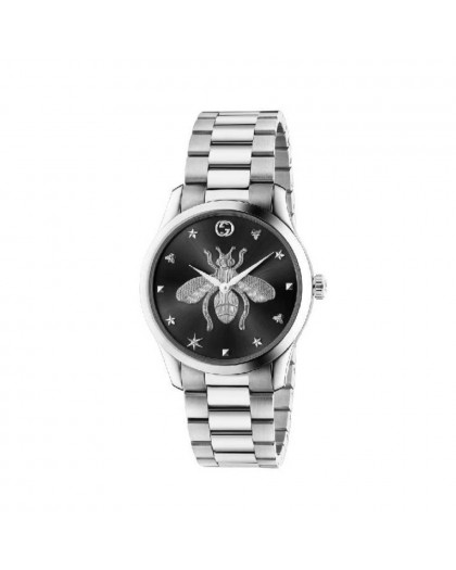 Orologio unisex di Gucci, collezione G-Timeless con cassa e bracciale in acciaio di colore silver con finitura mista. Quadrante silver con ape al centro.
