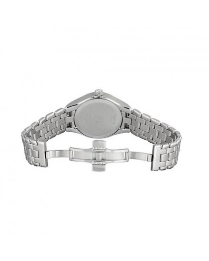 The Tissot women's watch with quartz movement, model T0722101105800, is a highly prestigious timepiece that seduces with its unique appearance. The watch consisted of a round shaped stainless steel case with a diameter of 34 mm, a black dial, scratch-resistant thanks to the sapphire crystal, and a silver-colored steel bracelet. The date window was set at three o'clock. It has a high accuracy of time measurement. Packaged in an original box, this Tissot women's watch model is an irresistible and fascinating watch!