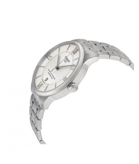 The Chemin Des Tourelles T0994071103800 Ladies Watch from Tissot is a watch model powered by a traditional self-winding mechanism with an 80-hour power reserve. The subtle, traditional look is emphasized by a 42mm case and silver-tone stainless steel bracelet with a mixed finish and a silver dial with metal indexes and hands. In addition, the glass back allows you to admire the work of the mechanism. The dial glass is covered with an anti-reflective coating for excellent readability. It is a reliable and at the same time extremely exciting watch for every woman!