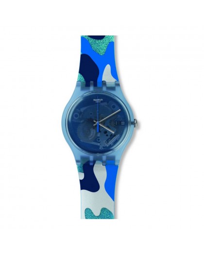 Powered by a flawless and precise quartz movement, the Swatch watch, the Silverscape SUOZ215 model, is a targeted choice for people who appreciate original accessories in a stunning design. The transparent minimalist dial, thanks to which it is possible to observe the functioning of the mechanism, has been inserted into a plastic case with a diameter of 41 mm and a silicone strip in various shades of blue with a speckled effect. It is also guaranteed for 2 years with an extra year for the movement. This stunning Swatch watch is perfect for people who want to have original accessories for everyday use.