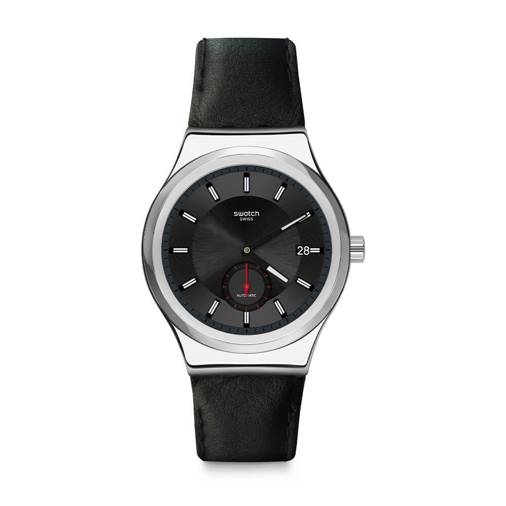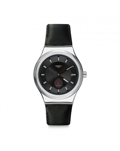 Elegance in a raw design: this is the Swatch men's chronograph from the Petite Second Black SY23S400 collection. It is a proposal for strong and determined men, perfectly suitable for any occasion. The water resistance class of 3 atmospheres, that is 30 m, characterizes this product and the drive is a perfect traditional mechanism, self-winding during the movement of the wrist, and the use of a glass caseback allows the owner of the watch to look at the work of its mechanism visible from the bottom of the case, which adds further prestige. The case is made of silver stainless steel with a diameter of 42 mm, while the black dial is protected by an esalite glass and the hours are marked with luminous indexes. It has an important function of the date window at three o'clock. The whole was mounted on an elegant leather strap. The warranty is 2 years with an additional year for the mechanism.