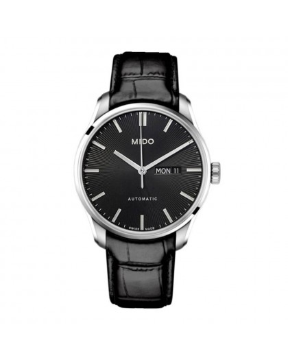 The Belluna Sunray M0246301605100 men's Mido watch is a classic timepiece that combines style and functionality. It is powered by a precision automatic movement with a power reserve of up to 80 hours, twice that of a regular caliber. The models in this collection have a transparent case on the back, which shows the mechanical and aesthetic beauty of Swiss watch movements. The case, made of high quality silver-plated stainless steel, has been attached to a black leather strap that fits perfectly on the wrist. The dial, on the other hand, in black, has indexes and hands in silver tones, beautifully in contrast with the background. Consequently, it has a very minimalist and elegant character. One of the functions is a date window at 3 o'clock. Packaged in an original company box, it is guaranteed for 2 years with an extra year for the movement. This Mido watch is a perfect proposition for men who appreciate stylish accessories that will work on any occasion!