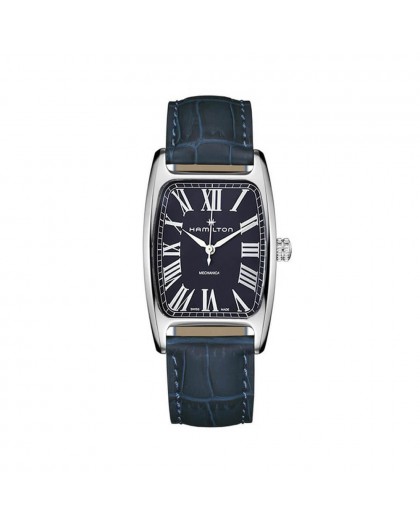 Elegance, class and impeccable taste in one: the Hamilton man's watch from the Boulton H13519641 collection is a timepiece with sophisticated elegance expressed through details. The distinctive rectangular case in silver-colored stainless steel with a polished finish harmonizes elegantly with the strong blue dial, on which the hours are marked with very clearly legible Roman numerals. At the heart of the watch is an H-50 manual movement with a power reserve of up to 80 hours. The whole is stabilized on a blue leather strap. The watch is guaranteed for 2 years with 1 extra year for the movement, it combines elegance and innovative technology.