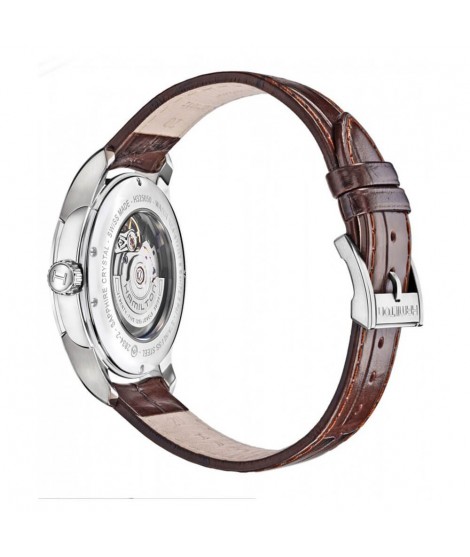The Hamilton man's watch from the Jazzmaster H32505511 collection is a classic timepiece with a unique design that fits perfectly into the device concept for any occasion. At the heart of this model is a unique mechanism with a power reserve of up to 80 hours. In addition to its excellent functionality, the watch also looks great. A 40mm diameter stainless steel case in silver with a polished finish is attached to a single brown calfskin strap. The white dial has rose gold indexes and hands. It is worth noting the day window at the top at 12 o'clock and the date window at 6 o'clock. Classic everyday!