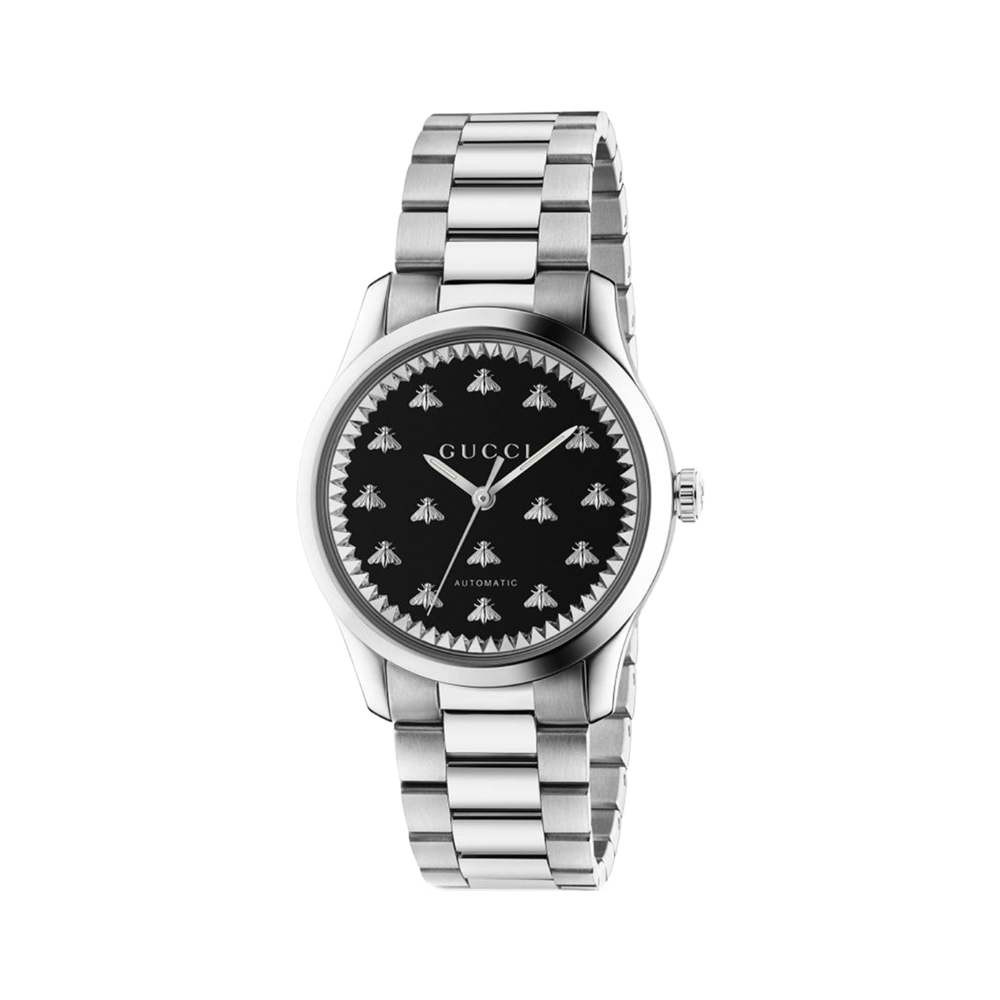 Orologi analogico unisex con movimento al quarzo Gucci G-Timeless YA1264130, cassa in acciaio inossidabile 38 mm, quadrante nero con api, vetro minerale e con cinturino in acciaio
