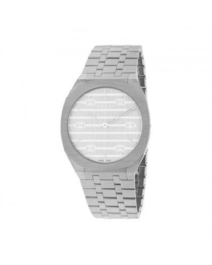 Orologi analogico da donna con movimento al quarzo Gucci G-Timeless YA163402, cassa in acciaio inossidabile 34mm, quadrante argentee in acciaio, chiusura deployant, vetro minerale in zaffiro resistente e cinturino in acciaio inossidabile
