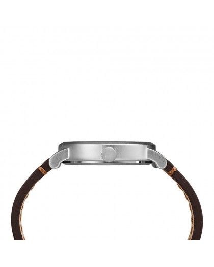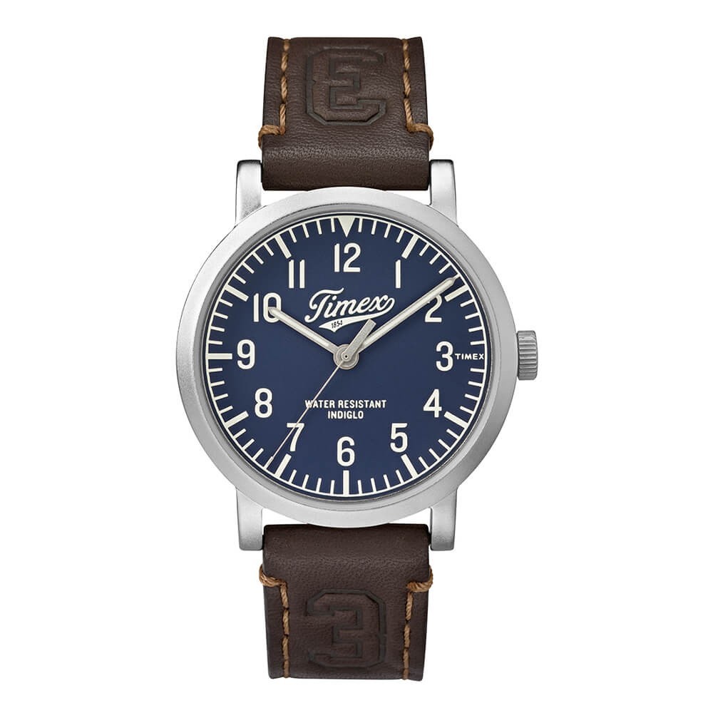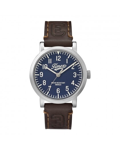 Orologio da uomo, Timex solo tempo con cassa in acciaio colore silver con finitura satinata. Cinturino in pelle di colore marrone. Quadrante blu con indici a contrasto per una ottima leggibilità.