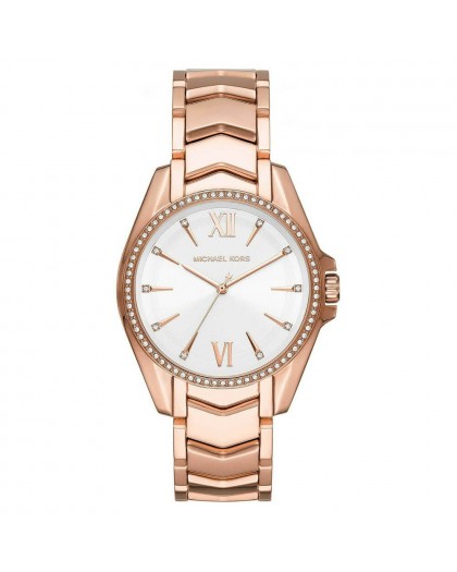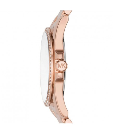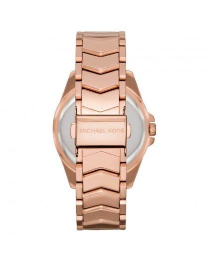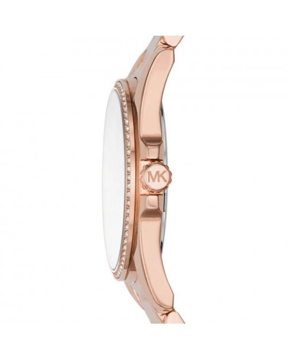 Zegarek Michael Kors MK6694 to maksymalny wyraz dyskretnej i wyrafinowanej elegancji. Ten model zadowoli każdą kobietę! Szczególną uwagę przyciągają błyszczące akcenty zarówno na bezelu zegarka jak i tarczy w postaci indeksów. To przyozdobienie małymi, lśniącymi cyrkoniami sprawia iż nie jest to zwykły czasomierz do odmierzania czasu, lecz także dodatek do biżuterii. Całość jest pokryta powłoką w kolorze różowego złota. Bransoleta ze stali nierdzewnej, w elegancki sposób dopasowuje się do nadgarstka. Oprócz doskonałego wyglądu, ten model czasomierza charakteryzuje się niezawodną funkcjonalnością: napędzany na precyzyjny mechanizm kwarcowy, posiada klasę wodoszczelności 10ATM, więc można bez obaw korzystać z niego nawet podczas kontaktu z wodą. Gwarancja jest na 2 lata z jednym dodatkowym rokiem na mechanzim.