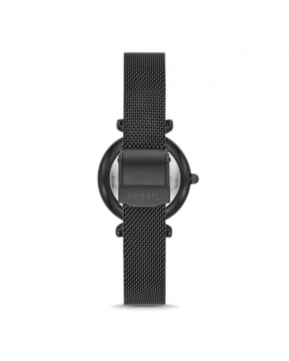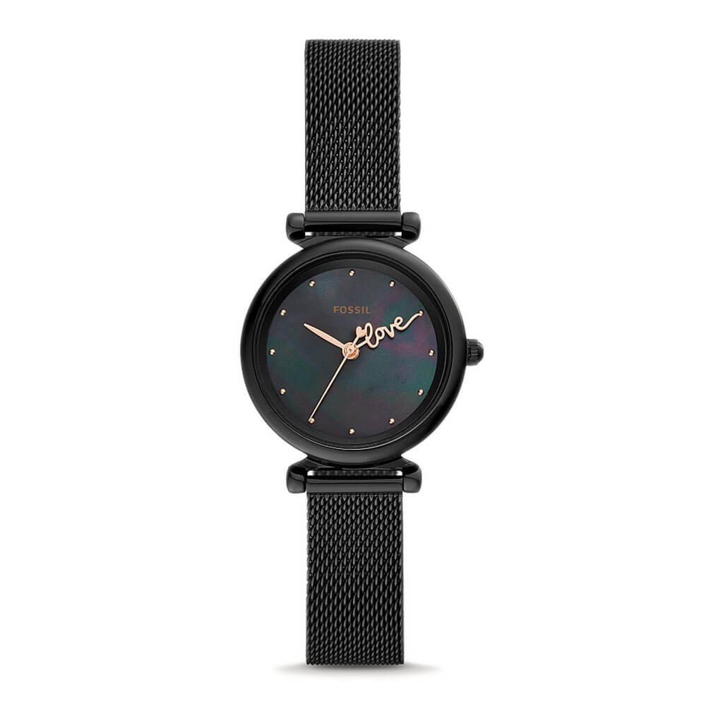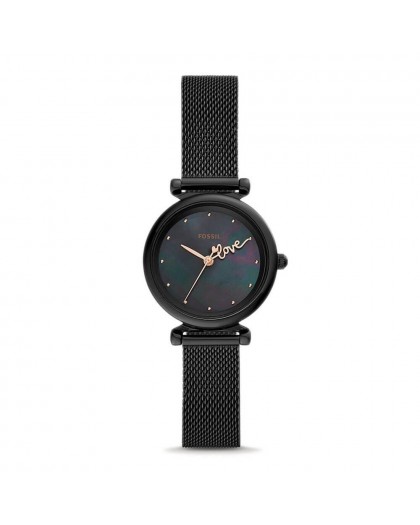 Fossil Carlie ES4829 to delikatny damski zegarek który nie tylko będzie niezawodnie wskazywał czas, ale też będzie stylowym dodatkiem do każdej stylizacji. Idealnie będzie prezentował się na nadgarstku każdej nowoczesnej kobiety. Napędem na ten model jest dokładny mechanizm kwarcowy a klasa wodoszczelności wynosi 5 ATM. Czasomierz jest wykonany ze stali szlachetnej o czarnym zabarwieniu. Uwagę przykuwa wskazówka minutowa w formie napisu „LOVE” i indeksy z kryształków. Zamieszczone są na pięknej ciemnej tarczy z masy perłowej, chroniona dodatkowo poprzez szkiełko mineralne. Koperta w czarnym odcieniu ze stali nierdzewnej, posiada okrągły kształt o średnicy 28 mm. Całość została podkreślona elegancką bransoletą w pięknym stylowym wykończeniu. Ten doskonały model zegarka marki Fossil będzie w stanie zachwycić każdą kobietę!