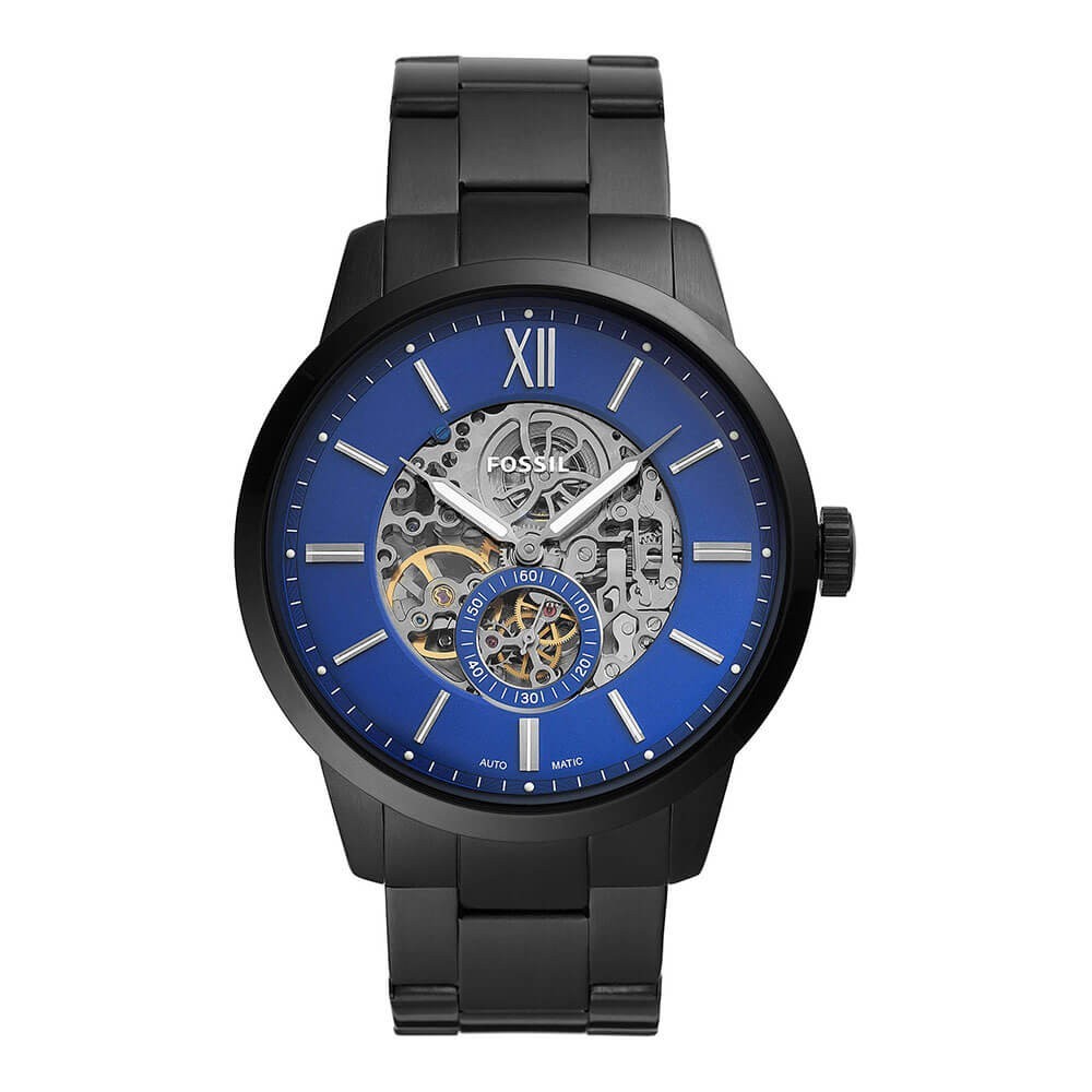 Fossil ME3182 to model męskiego zegarka który łączy w sobie prostotę i elegancję, ale przede wszystkim aktualne trendy z najmodniejszą kolorystyką, co zostało uwidocznione na pierwszy rzut oka poprzez tarczę w granatowym silnym kolorze z ładnie prezentującymi się wskazówkami oraz klasycznymi rzymskimi cyframi a także indeksami. Do produkcji koperty i paska wykorzystano wysokiej jakości materiał, jakim jest stal szlachetna w czarnym odcieniu. Zegarek jest napędzany tradycyjnym mechanizmem nakręcanym automatycznie podczas ruchu nadgarstka a dodatkowego uroku i klasy dodaje przeszklony dekiel która pozwala na obserwowanie mechanizmu widocznego od spodniej części koperty. Wodoszczelność równa 5 atmosfer tj. 50 m jest jedną z cech czasomierza. Z gwarancją na 2 lata i z jednym dodatkowym rokiem na mechanizm, zegarek marki Fossil łączy w sobie funkcjonalność i ciekawe wzornictwo.