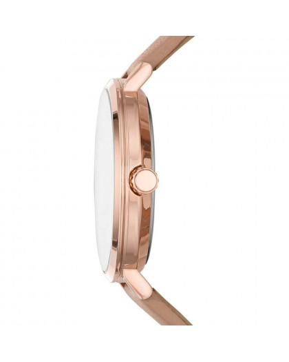 Michael Kors MK7105 to elegancki o niesamowitej prostocie zegarek dla kobiet o ponadczasowym minimalistycznym wykonaniu. Zamocowany na delikatnym beżowym pasku ze skóry, ten oto zegarek posiada nieskazitelne wykończenia. Koperta w okrągłym kształcie o średnicy 38 mm, jest wykonana ze złotej stali nierdzewnej i obejmuje tarczę w bardzo minimalistycznej odsłonie w białym kolorze. Na jej tle elegancko odznaczają się cztery małe cyrkonie oraz złote wskazówki. Napędem na ten czasomierz jest nienaganny mechanizm kwarcowy a klasa wodoszczelności wynosi 3 ATM. Do produkcji zostało dołączone orginalne firmowe pudełko, i jest to idealny pomysł na prezent dla każdej eleganckiej kobiety!