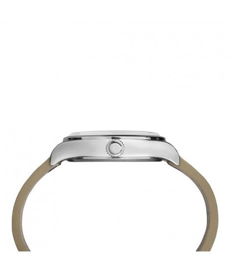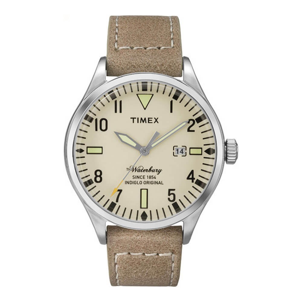 Timex zegarek męski z kolekcji Waterbury TW2P83900 to codzienna i ciekawa propozycja na uzupełnienie męskiej stylizacji. Wewnątrz urządzenia schowano popularny mechanizm kwarcowy, który gwarantuje nienaganną precyzję. Posiada gwarancję na 2 lata z jednym dodatkowym rokiem na mechanizm a klasa wodoszczelności wynosi 5 ATM. Z punktu widzenia estetyki, zegarek posiada kopertę z wysokojakościowej stali nierdzewnej o średnicy 40 mm, zamocowaną na naturalnym skórzanym pasku w brązie z ozdobionym przeszyciem które bardzo dobrze trzyma się na ręce i zapewnia komfort noszenia. Tarcza w jasnobrązowym kolorze jest bardzo minimalistyczna i wyrazista oraz pokryta szkiełkiem mineralnym zapewniącym też odpowiednią przejrzystość. Posiada ważną funkcję datownika umieszczonego na godzinie trzeciej. Do produkcji zostało dołączone orginalne opakowanie firmowe. Ten zegarek marki Timex będzie w stanie zadowolić każdego mężczyznę!