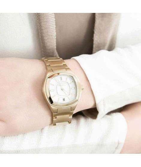 Damski zegarek z kolekcji Breil Aida TW1416: szyk, klasa i nienaganna elegancja! To idealny model dla kobiet pragnących prezentować się elegancko przy każdej okazji. To bardzo delikatny model, całkowicie pokryty złotą powłoką. Zamocowana na stabilnej bransolecie ze stali nierdzewnej, koperta z tego samego materiału, posiada okrągły kształt o średnicy 38 mm. Złoty kolor odznacza indeksy oraz wskazówki na białej tarczy w nieskazitelnie uroczy sposób. Na tarczy dodatkowo został zamieszczony datwonik na godzinie szóstej. Napędem na ten model zegarka jest dokładny mechanizm kwarcowy. Posiada on gwarancję na 2 lata z jednym dodatkowym rokiem na mechanizm. To propozycja idealna dla Pań kochających wykwintne i nienaganne dodatki, w stanie skraść każde serce.
