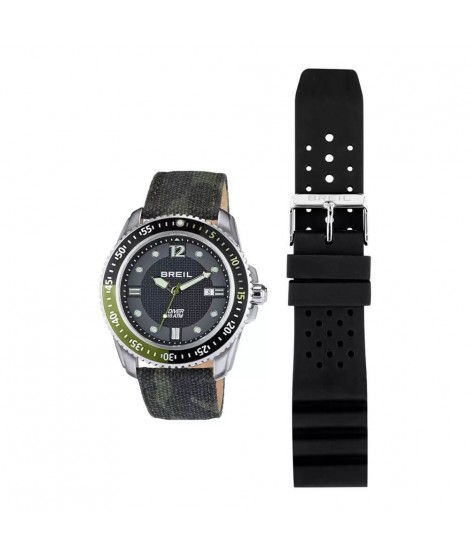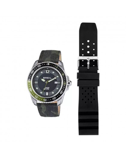 Zegarek męski marki Breil z kolekcji Oceano TW1421 to dynamiczny i sportowy zegarek idealny dla mężczyzn prowadzących aktywny tryb życia. Sportowy akcent został podkreślony przez wiele detali: przede wszystkim zamocowanie na pasku z materiału w kolorze moro który komfortowo układa się na męskim nadgarstku. Koperta ze srebrnej, wysokojakościowej stali nierdzewnej, posiada okrągły kształt o średnicy 47 mm. Szara tarcza, posiada ważną funkcję datwonika na godzinie trzeciej, i jest chroniona poprzez twarde szkiełko odporne na zarysowania. Klasa wodoszczelności wynosi 100m (10 ATM). Posiada gwarancję na 2 lata z jednym dodatkowym rokiem na mechanzim kwarcowy który napędza ten oto model gwarantując precyzję i dokładność. Do produkcji zostało załączone orginalne opakowanie firmowe ale także bardzo przydatny pasek z czarnego silikonu.