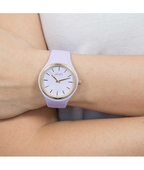 Słodki jak cukierek w wyraziście dziewczyńskim stylu: taki jest Zegarek marki Liu Jo z kolekcji Sprint TLJ1236 adresowany do kobiet kochających kolor fioletowy i wszystkie jego odcienie. Modny, sportowy z akcentem elegancji. Zamocowany na silikonowym pasku, posiada kopertę w okrągłym kształcie o średnicy 36 mm. Tarcza zachwyci miłośniczki minimalistycznych dodatków, iż posiada na swoim fioletowym tle bardzo delikatne i smukłe indkesy oraz wskazówki w odcieniu złota. Prestiż został podkreślone poprzez logo marki Liu Jo u góry tarczy. Napędzany na precyzyjny mechanizm kwarcowy, posiada klasę wodoszczelności do 5 ATM (50 m). Zegarek posiada gwarancję na 2 lata z jednym dodatkowym rokiem na mechanizm a do produkcji dodatkowo zostało dołączone orginalne opakowanie firmowe. Ten model czasomierza zadowoli każdą kobietę bez względu na wiek.